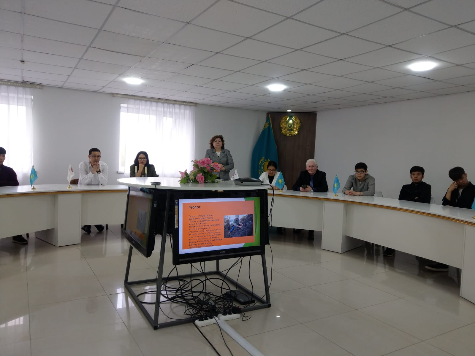 Олар бізді көмірсутектерді өндіру саласындағы компанияның негізгі қызметімен, мұнайды дайындау процесімен, кен орындарының геологиясы мен игеруімен, компанияның әлеуметтік және корпоративтік жауапкершілігімен таныстырды. Сондай-ақ студенттерге «Қазақойл Ақтөбе» ЖШС қызметі туралы 5 минуттық бейнеролик көрсетілді.